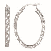 Sterling Silver 2x15MM Diamond Cut Oval Hoop Earring with Hinged Closure. This item is Rhodium Plated.- $30.00