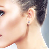 3.3 MM Round Cut Ruby and 1/2 Ctw Lovebright Diamond Precious Earrings in 14K White Gold