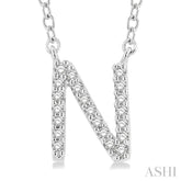 1/20 Ctw Initial 'N' Round Cut Diamond Pendant With Chain in 10K White Gold