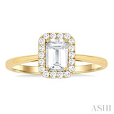 6x4 MM Octagonal Shape White Topaz and 1/6 Ctw Round Cut Diamond Halo Semi-Precious Ring in 14K Yellow Gold