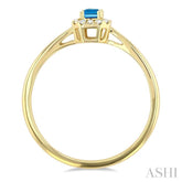 5x3 MM Oval Shape Blue Topaz and 1/20 Ctw Single Cut Diamond Halo Semi-Precious Ring in 10K Yellow Gold
