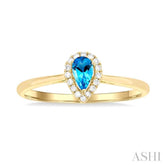 5x3 MM Pear Shape Blue Topaz and 1/20 Ctw Single Cut Diamond Halo Semi-Precious Ring in 10K Yellow Gold
