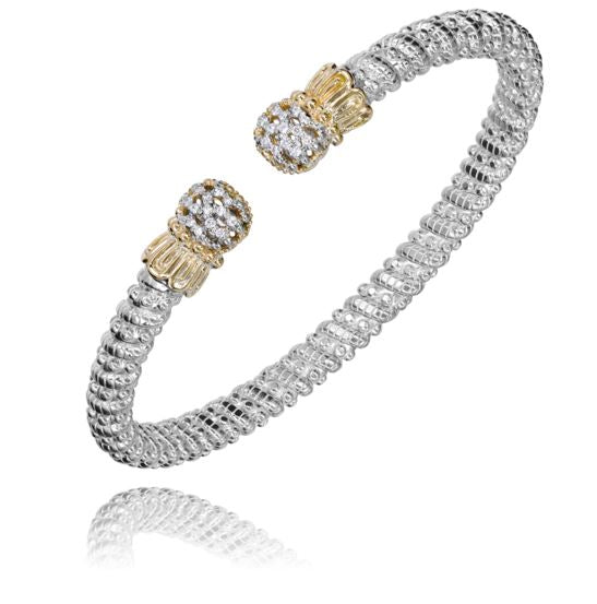 14KY/SS 4MM .13CTW ROUND BRILLIANT WOVEN DESIGN OPEN BRACELET