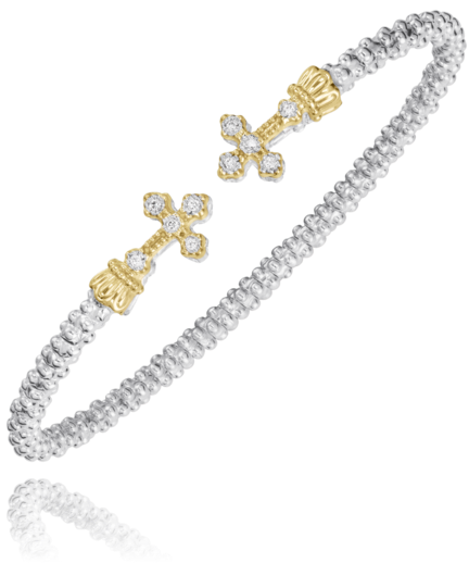 SS/14KY 2MM .08TW RB SM CROSS OPEN END CUFF BRACELET