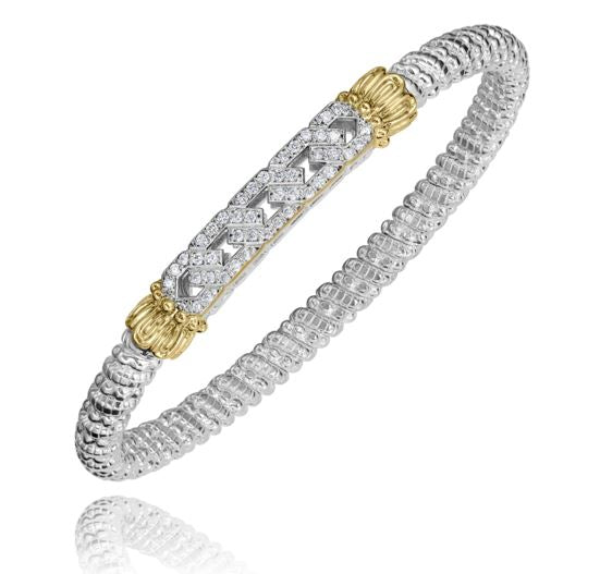 14KY/SS 4MM .33CTW ROUND BRILLIANT DIAMOND HEX DESIGN CLOSED BAR BRACELET