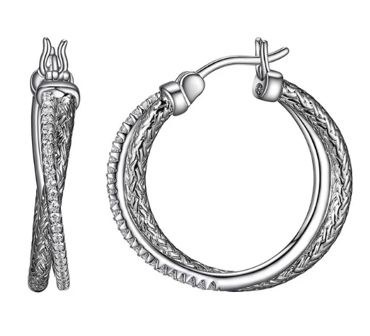 SS/RHOD CZ CRISS CROSS 25MM HOOP