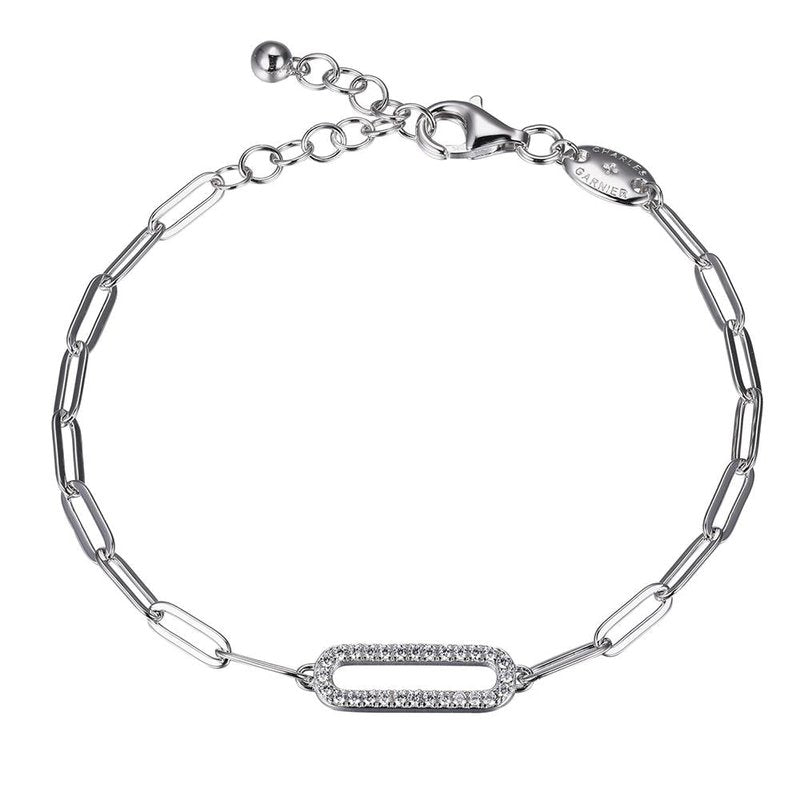 ss/rhod 3mm prpclp w/ cz oval cntr lnk brc 6.75-8"