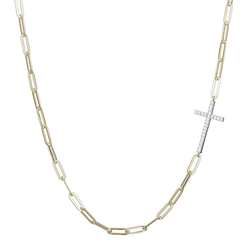 SS GLD PLTD CZ CROSS NECK