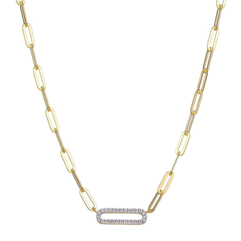 SS/GP/RHOD 17" PAPERCLIP NECLACE W CZ CENTER LINK