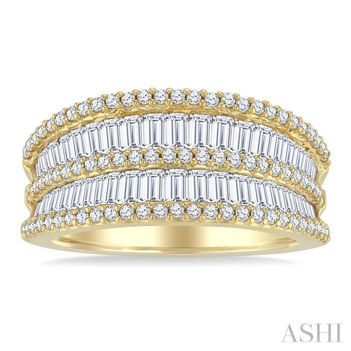 14KY 1.50TW BAG/RB PRONG & 2 CHAN ROW TAPERED DIA BAND SZ 7