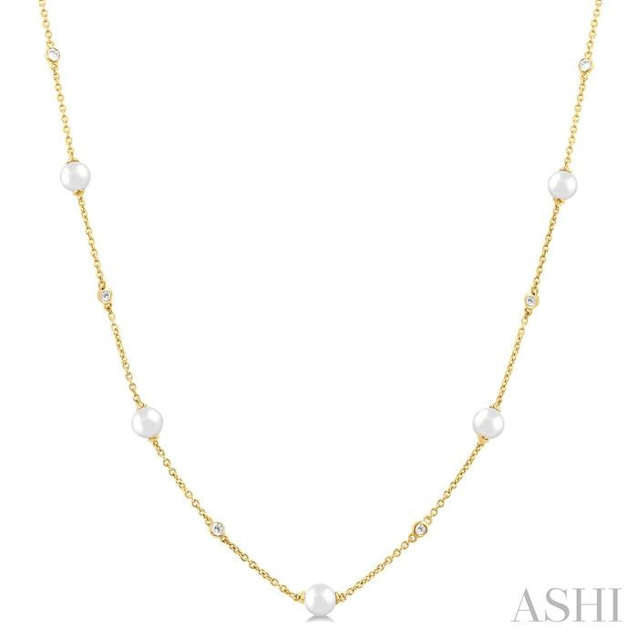 14KY .12CTW ROUND BRILLAINT DIAMOND AND 3MM FRESH WATER PEARL ALTERNATING NECKLACE 16-18"