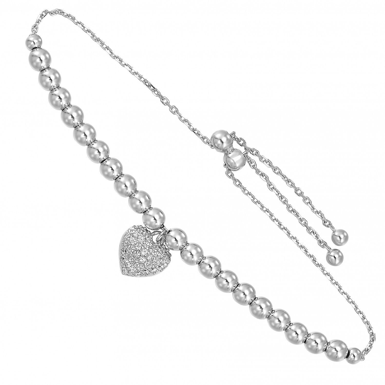 SS CZ PAVE HEART BEADED BOLO BRAC UP TO 8.5"