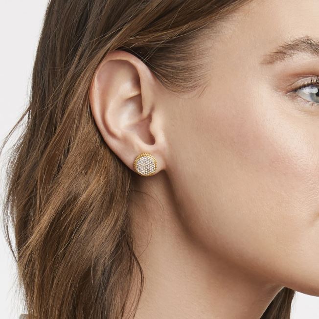 FLEUR-DE-LIS STUD GLD PAVE CZ