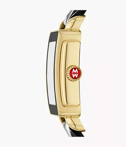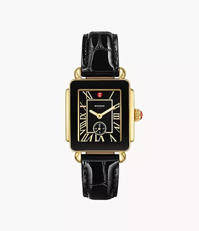 ST/ST/18K GOLD PLAT DECO SPORT MID NOIR BLK LEATHER STRAP 16MM WATCH