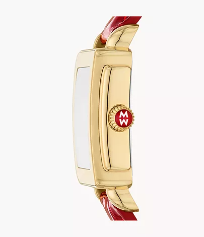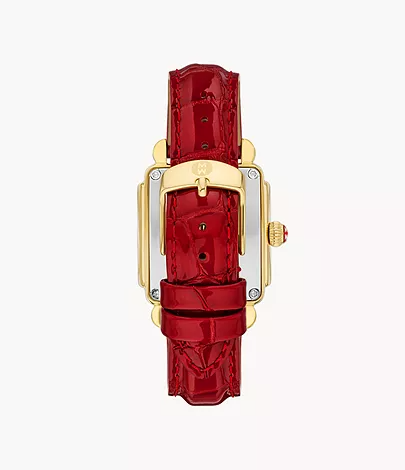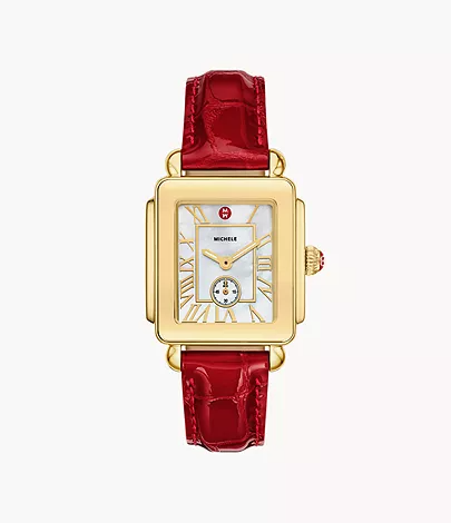 ST/ST/18K GOLD PLAT DECO SPORT MID RUBY RED LEATHER STRAP 16MM WATCH