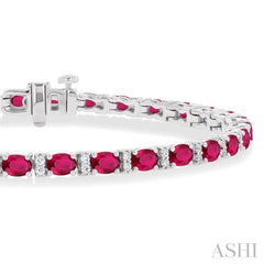 4X3 MM Oval Cut Ruby and 1/3 ctw Round Cut Diamond Precious Bracelet in 14K White Gold